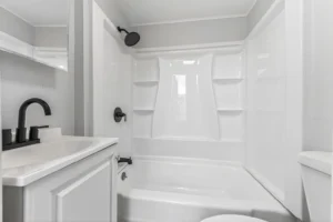 The bedroom offers a comfortable private retreat, while the bathroom features durable tile finishes and a clean, functional design. The layout makes great use of the space, giving the home a comfortable and easy-to-maintain feel.