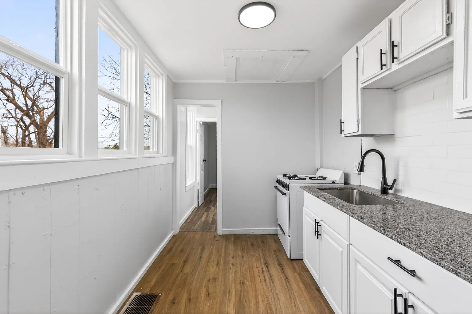 Welcome home to this charming 1 bedroom, 1 bathroom unit located in a quiet triplex in Kansas City, KS. This comfortable space features beautiful hardwood floors paired with tile accents, creating a clean and classic feel throughout the home.